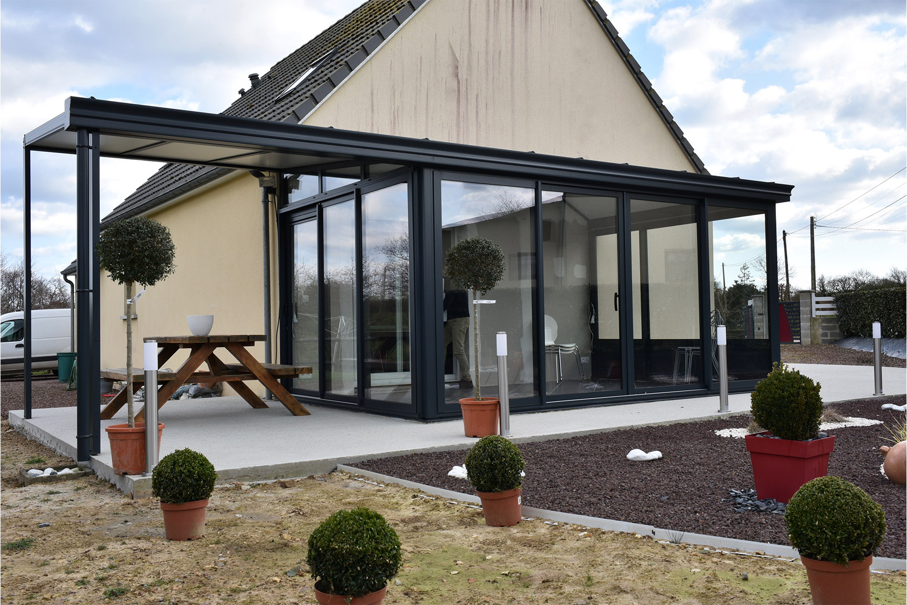 Véranda + pergola à Lessay dans la Manche en Normandie